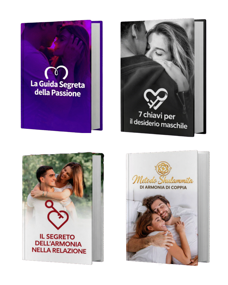Ogni guida copre un livello diverso della tua vita di coppia: attrazione, desiderio maschile, armonia emotiva e convivenza quotidiana. Insieme, formano una mappa chiara e strutturata, non consigli isolati.